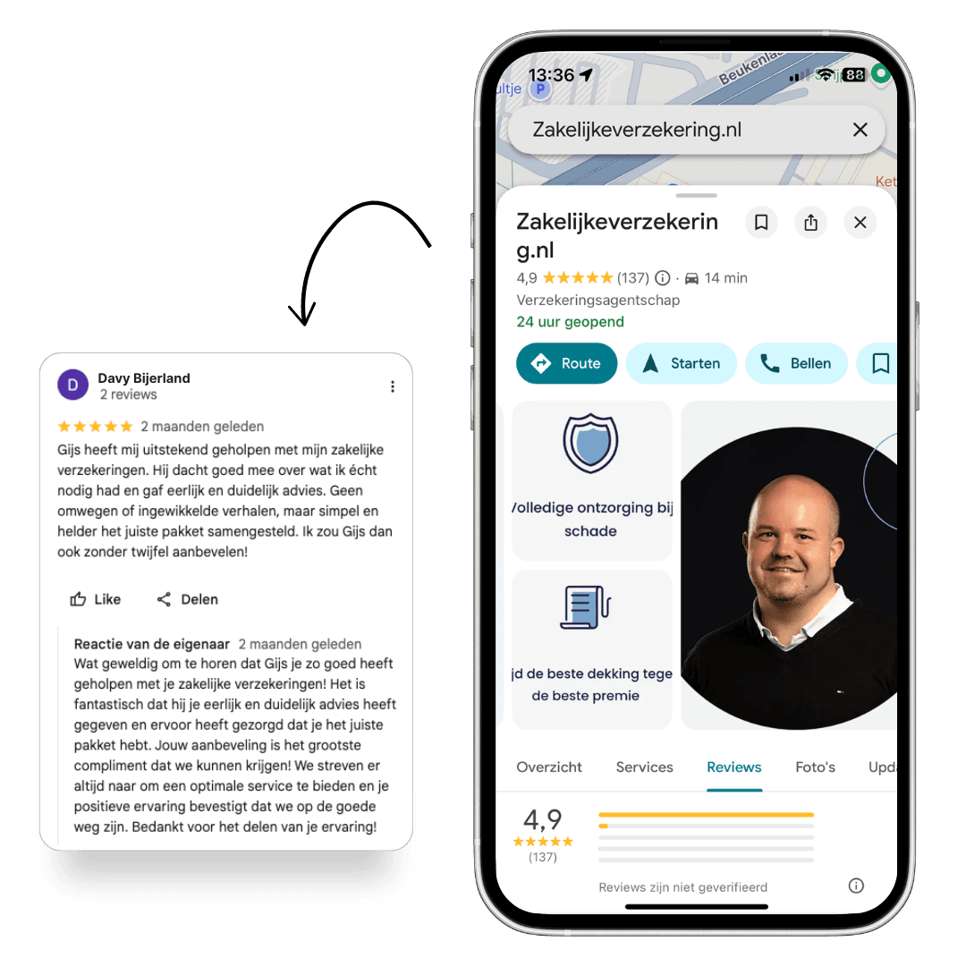 Google reviews verbeteren je online reputatie, verhogen de zichtbaarheid in zoekresultaten, bouwen vertrouwen op bij potentiële klanten en zorgen voor meer verkeer en sales naar je bedrijf.