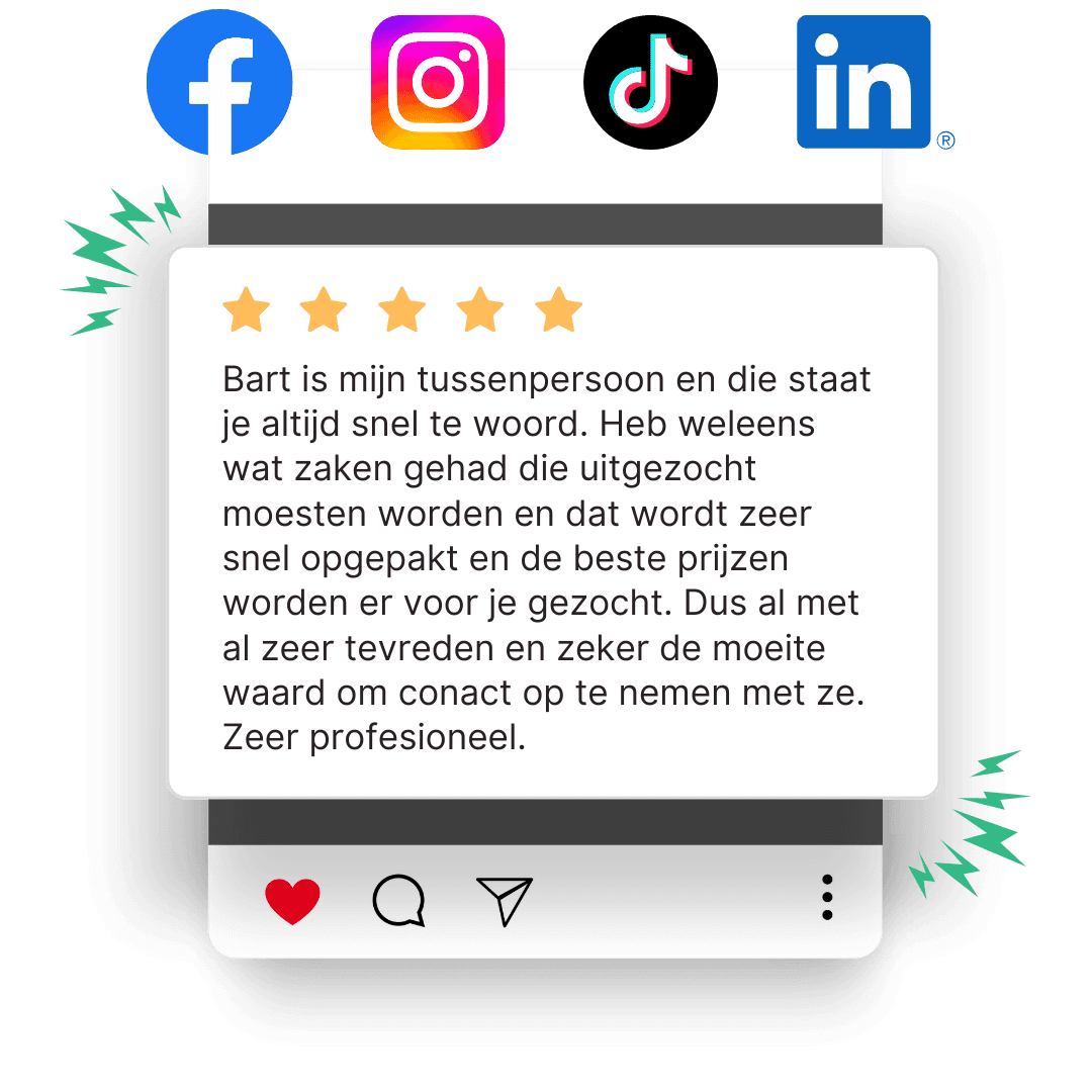 Wij plaatsen je beste reviews direct door op je social media platform naar keuze
