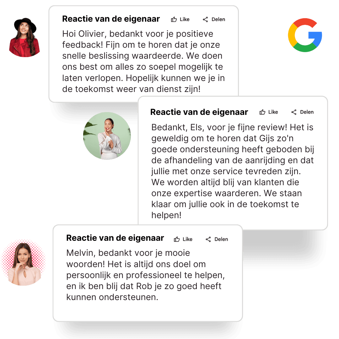 We reageren automatisch op elke review, delen de mooiste op socials en houden je profiel levend. Jij hoeft er niks voor te doen